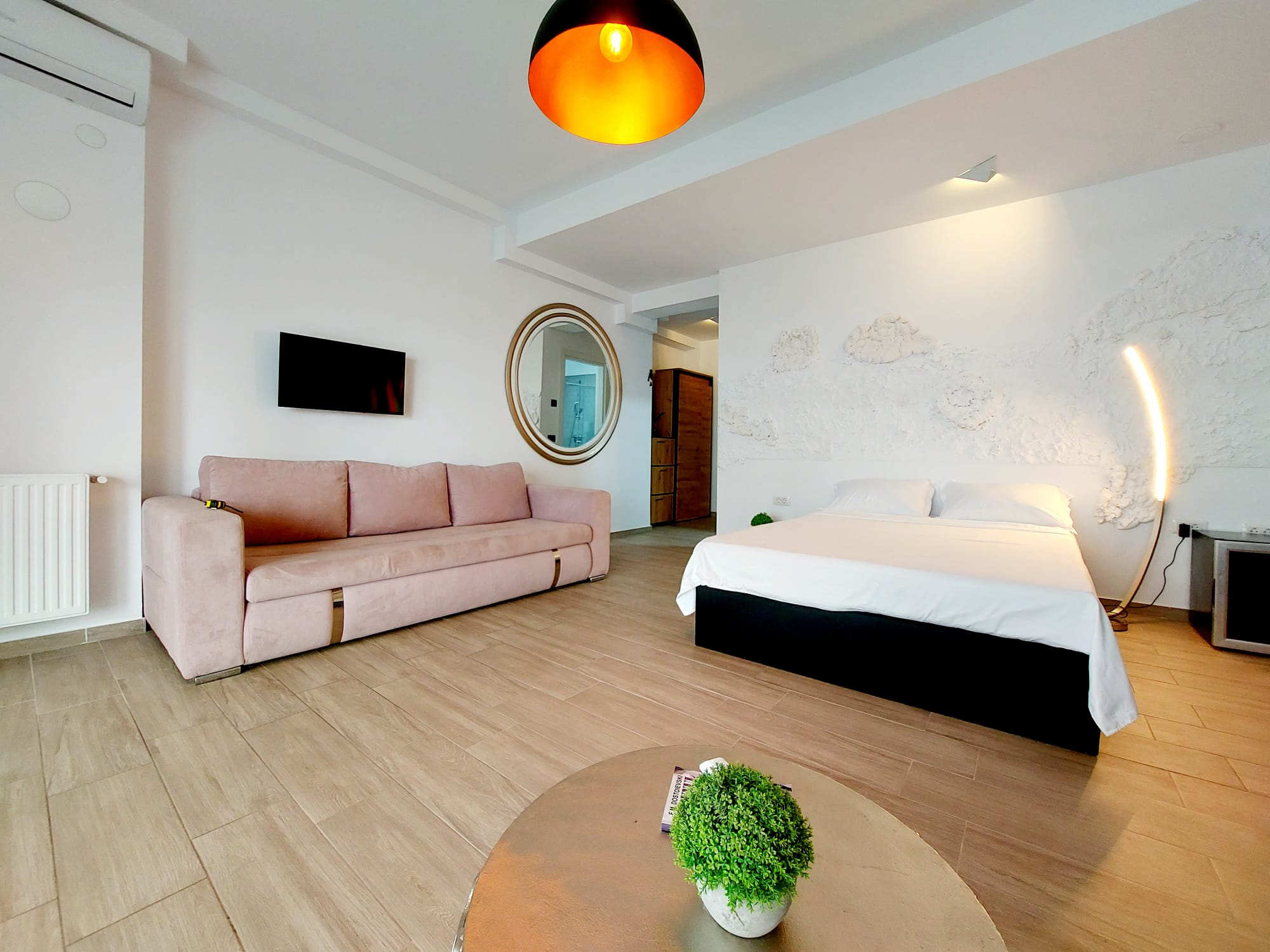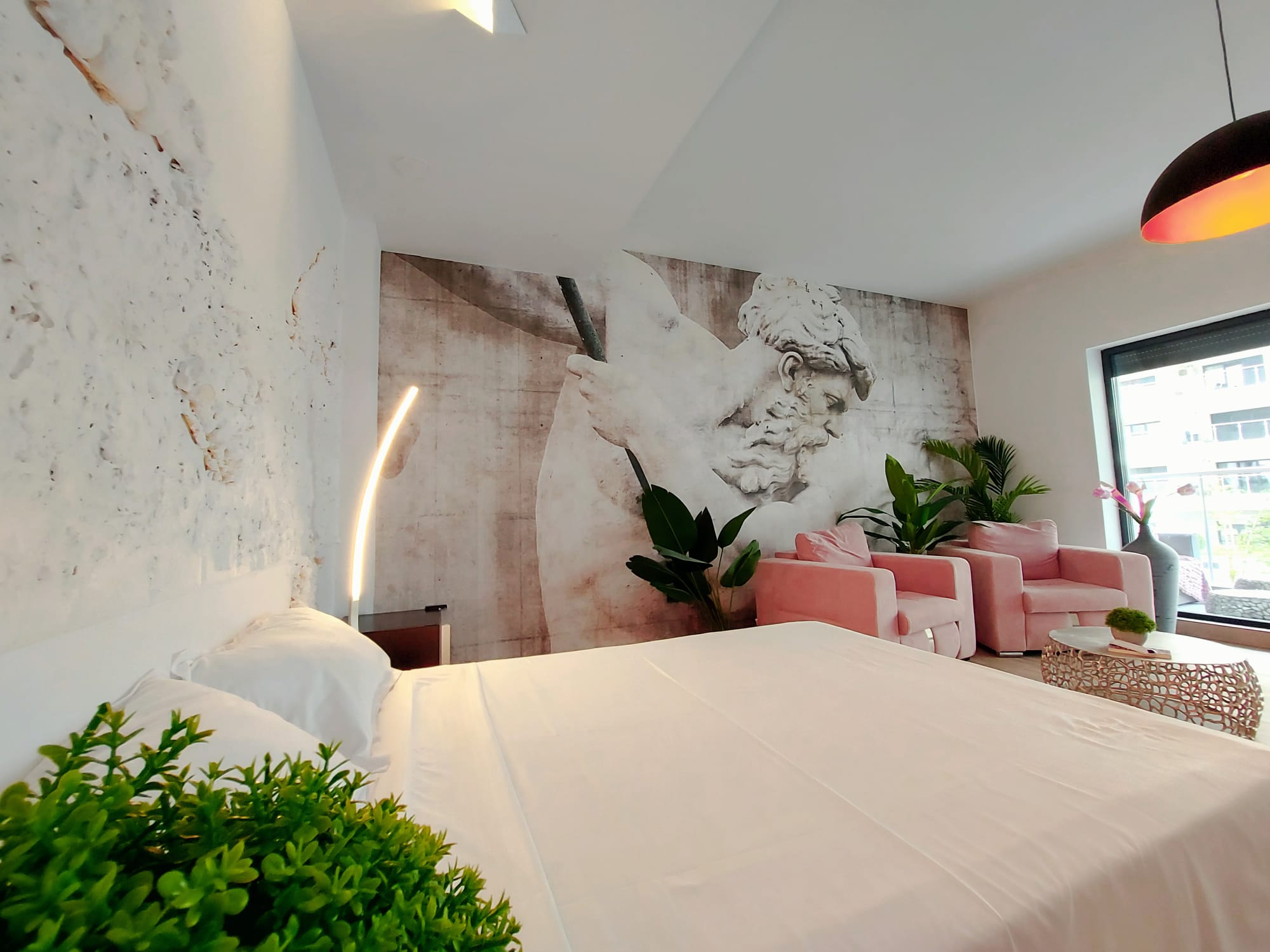 Descoperă un studio cu personalitate, situat în complexul Casa del Mar din Mamaia Nord – locul ideal pentru o escapadă relaxantă, într-un decor care te scoate din rutină. Cu un tapet impresionant cu Zeus, acest spațiu te invită într-o atmosferă elegantă și artistică, la doar câțiva pași de plajă.